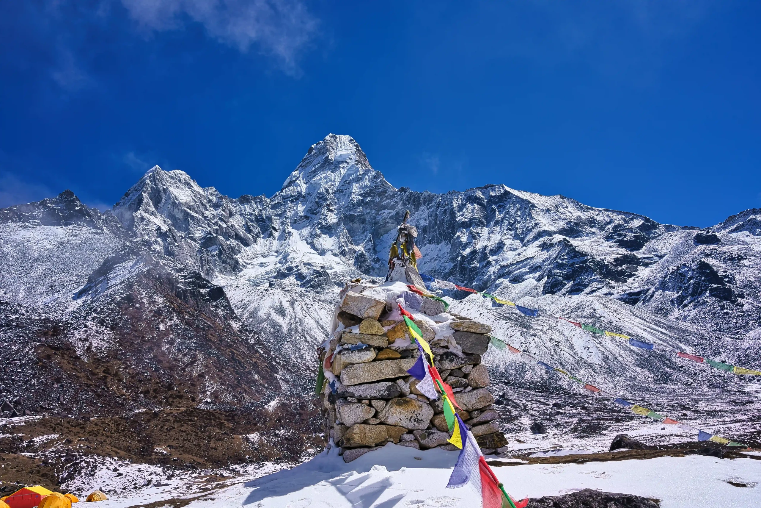 Highlights of the day: Today is the big highlights day of your Everest region trek. You’ll be reaching the base camp of world’s highest peak pushing from Lobuche. Note that Mt. Everest itself isn’t visible from base camp – so we’ll spending some time here at the foot of Everest, capturing pictures and we’ll head to our overnight spot. Arrive at Gorakshep, a small settlement of lodges on the sandy ground beneath Kala Patthar.